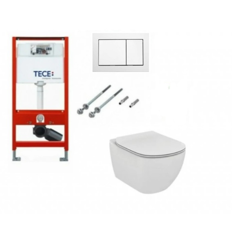 Žymos: Tece potinkinis rėmas su baltu vandens nuleidimo mygtuku ir Ideal Standard Tesi pakabinamu klozetu su lėtaeigiu dangčiu TECE-KOMPL-T007801+T352701+ 9240700 Klozetai ir rėmai
