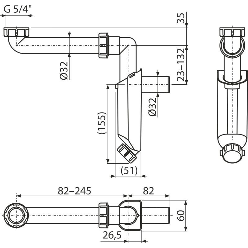 Šis praustuvo sifonas Ø32 mm pagamintas iš tvirto polipropileno, kuris yra atsparus drėgmei, temperatūrų svyravimams ir kasdieniam naudojimui. Kompaktiška konstrukcija leidžia sutaupyti vietos po praustuvu, todėl sifonas puikiai tinka tiek mažoms, tiek modernioms vonioms.