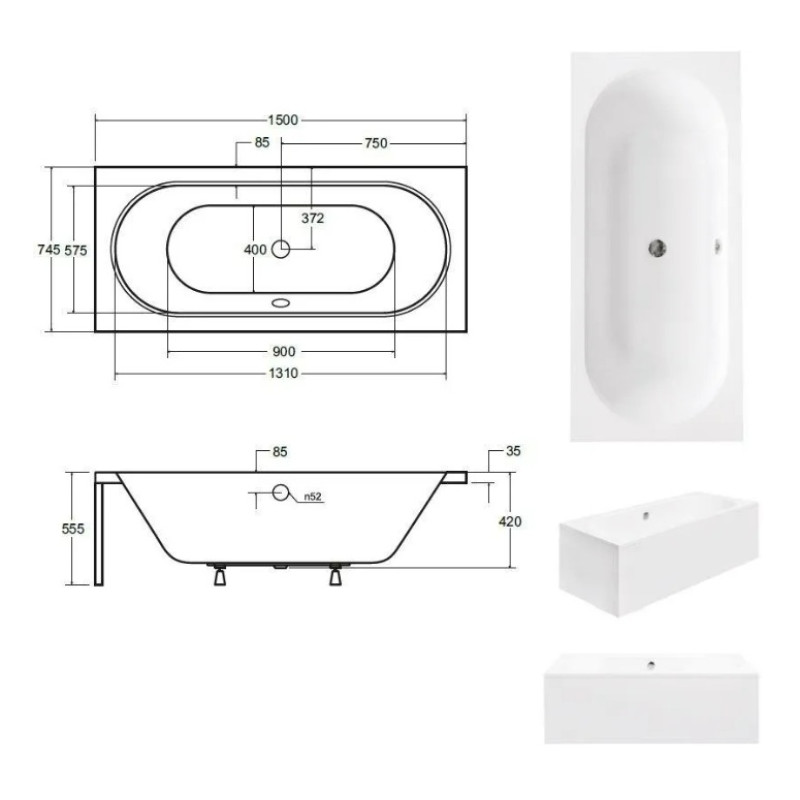 Žymos: Akrilinė vonia Besco Avita 150x75 dešinė #WAV-150-NP6+OAV-150-NS Vonios