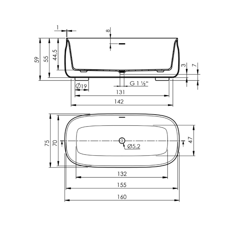 Akmens masės vonia Rondo 170x80 balta matinė Sanydur