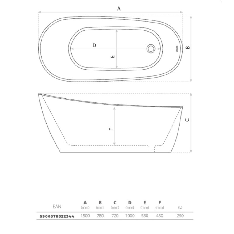 Akrilinė laisvai pastatoma vonia Comodo 1500 mm  Akrilinė laisvai pastatoma vonia Comodo 1500 mm