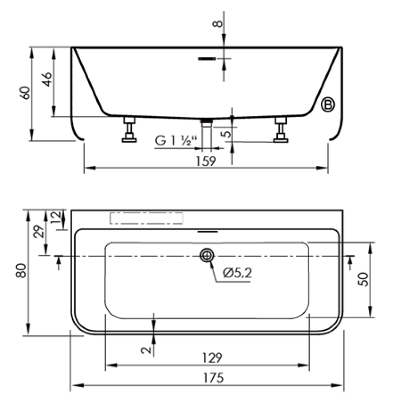 Akrilinė vonia Sanycces Trento 170 x 80 cm komplekte su dugno vožtuvu.
