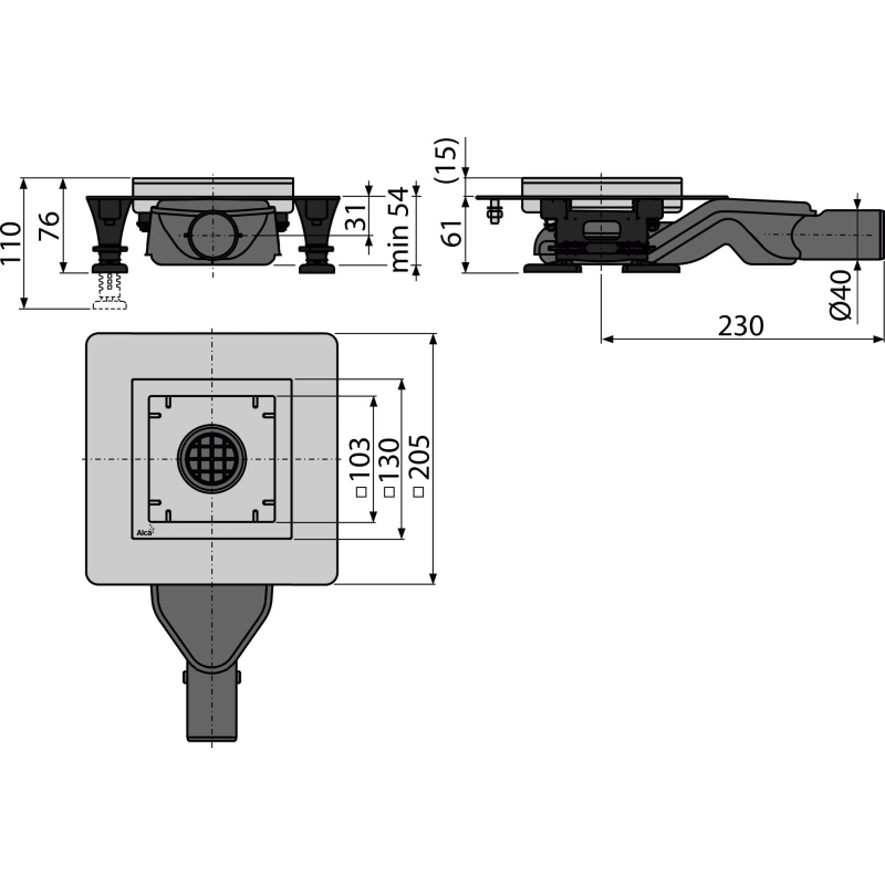 - Trapo viršus 106×106×7 mm, medžiaga nerūdijantis plienas