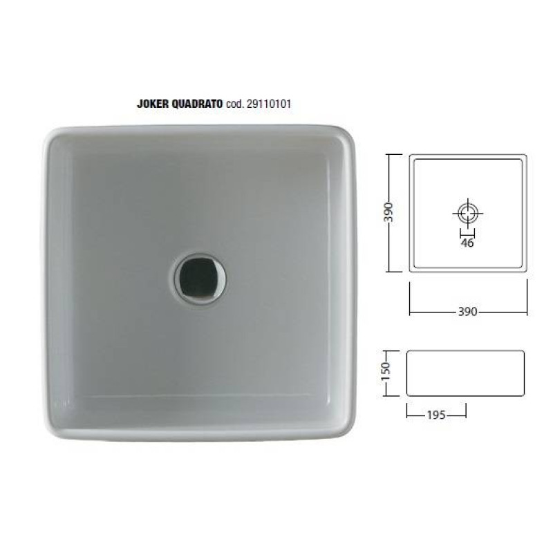 Alice Ceramica Joker Quadrato 390x390 pastatomas praustuvas baltas