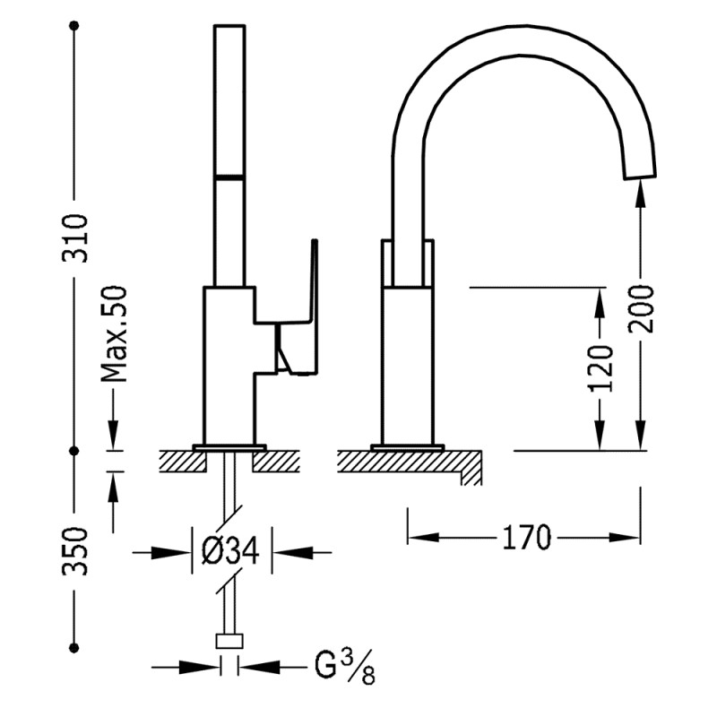 Aukštas praustuvo maišytuvas Tres Cuadro-Tres 106606