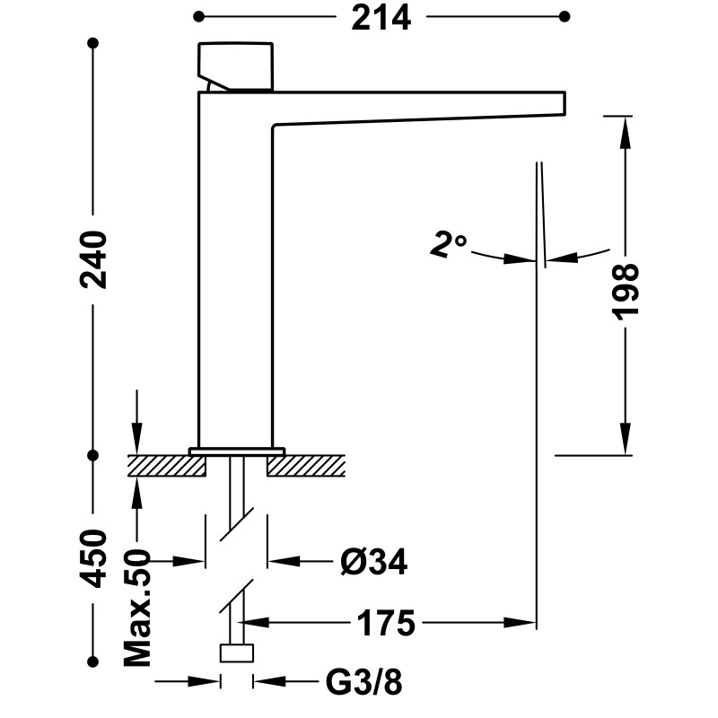 Aukštas praustuvo maišytuvas Tres Slim Exlusive 202.103.04