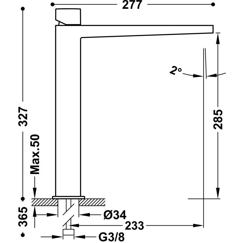 Aukštas praustuvo maišytuvas Tres Slim Exlusive 202.103.06