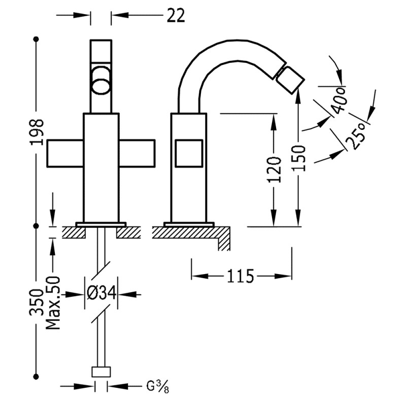 Bidė maišytuvas Tres Cuadro-Tres 1.08.124