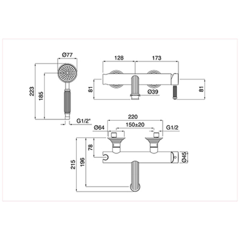 Bugnatese Athena vonios maišytuvas su rankiniu dušeliu 8502