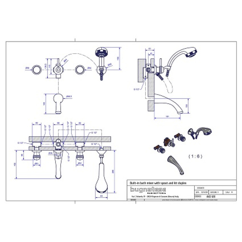 Bugnatese Axo potinkinis vonios maišytuvas 618, su potinkine dalimi.