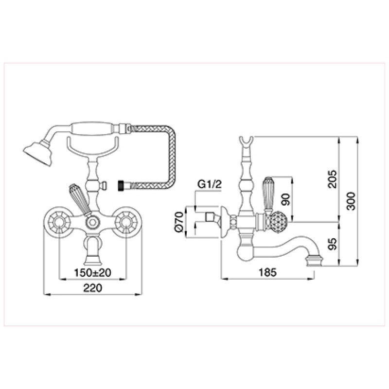 Bugnatese Arcadia maišytuvas voniai su dušo galvute ir swarowski kristalu spalvų pasirinkimas chromas, bronza, auksas
