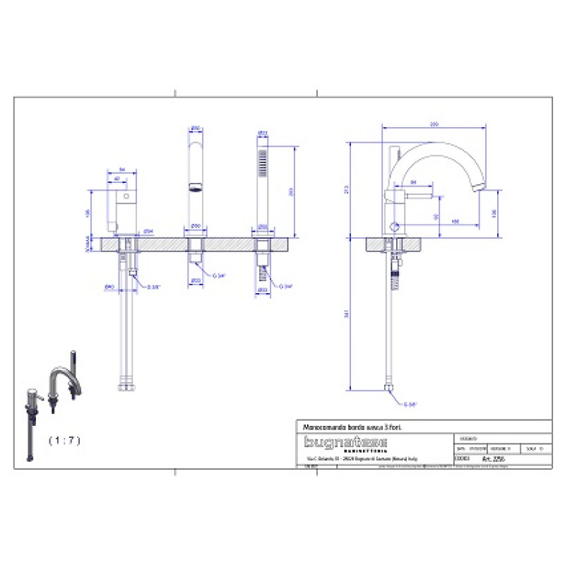 Bugnatese Kobuk į vonios kraštą įgrežiamas maišytuvas 3-jų dalių 2256