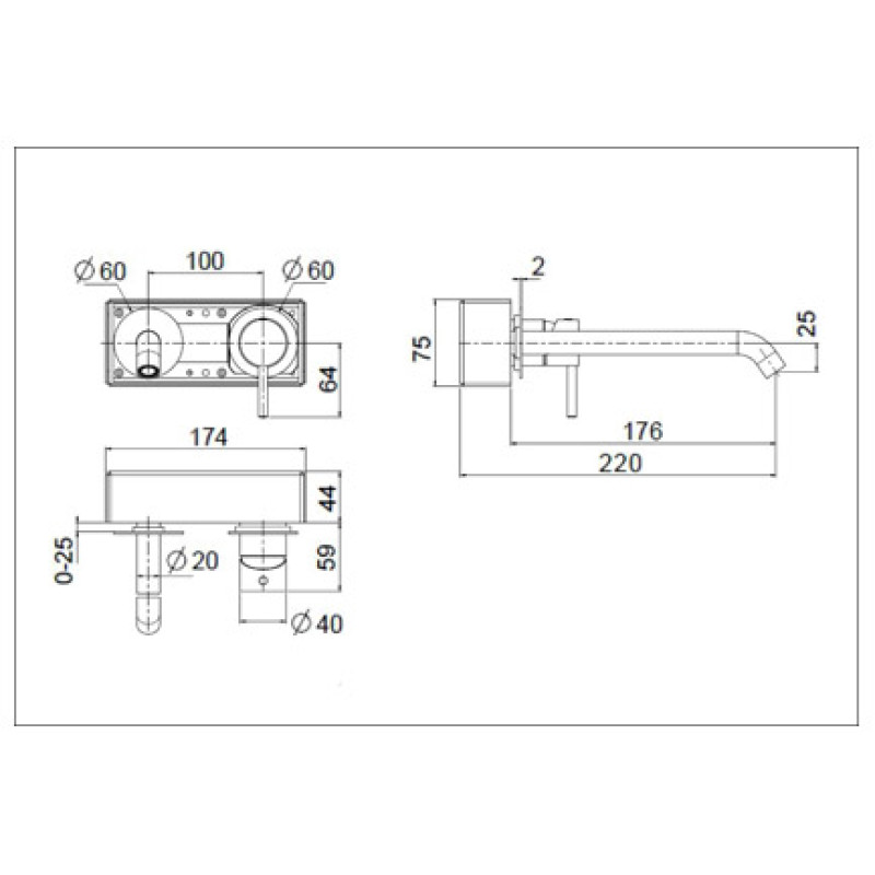 Bugnatese Kobuk Kirvy Steel praustuvo maišytuvas iš sienos 9051