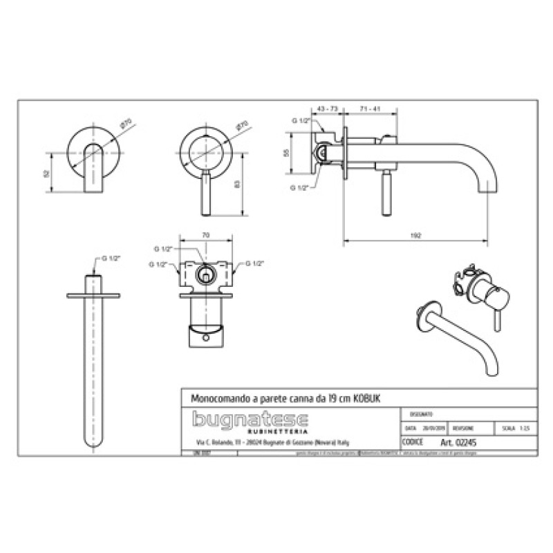 Bugnatese Kobuk praustuvinis sieninis maišytuvas su potinkine dalimi