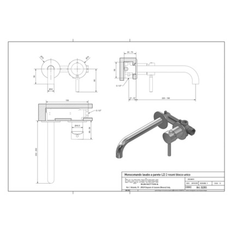 Bugnatese Kobuk praustuvo maišytuvas iš sienos 2265, su potinkine dalimi.