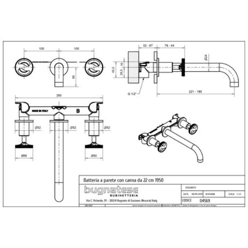 Bugnatese Millenovecinquanta praustuvo maišytuvas iš sienos 4569 - Voniosguru.lt