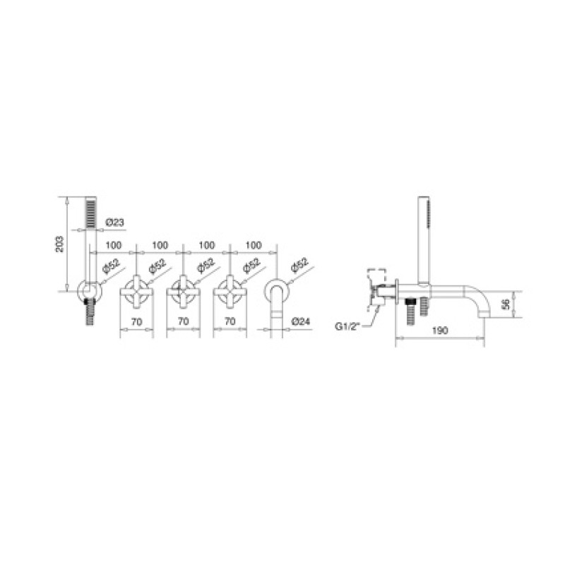 Bugnatese Rodos vonios maišytuvas 7319, su rankiniu dušeliu.
