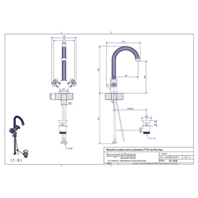 Bugnatese Olympia praustuvo maišytuvas 8434, su dugno vožtuvu.