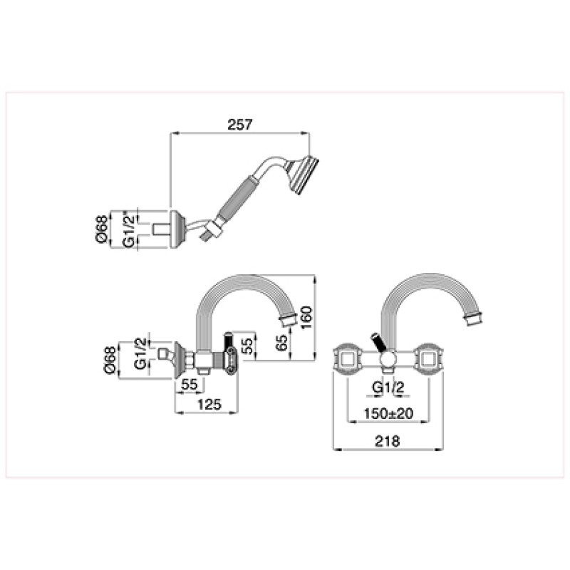 Bugnatese Olympia vonios maišytuvas 8402, su rankiniu dušeliu.