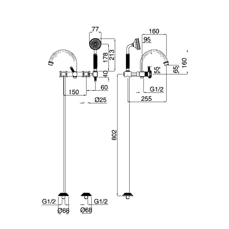 Bugnatese Olympia vonios maišytuvas 8402P, su rankiniu dušeliu.