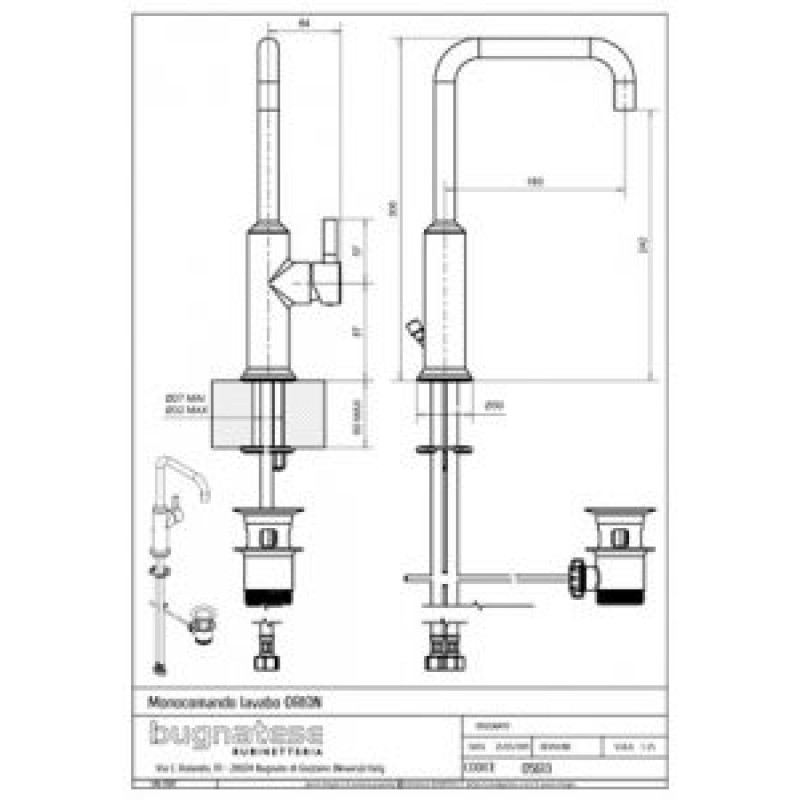 Bugnatese Orion aukštas praustuvo maišytuvas 5613, su vožtuvu.