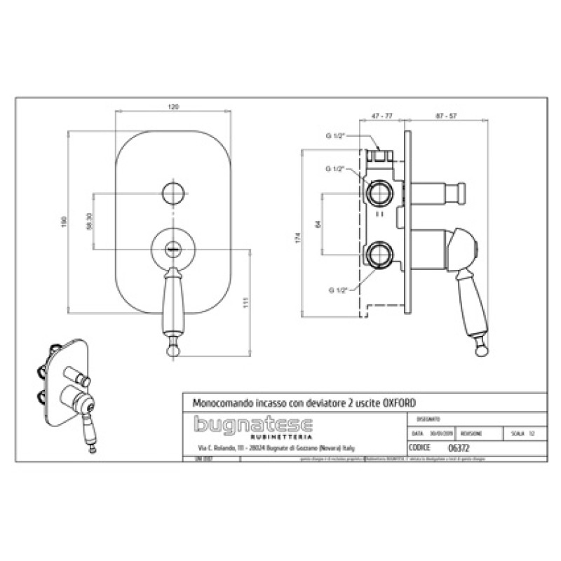 Bugnatese Oxford dušo maišytuvas 6372, su potinkine dalimi.