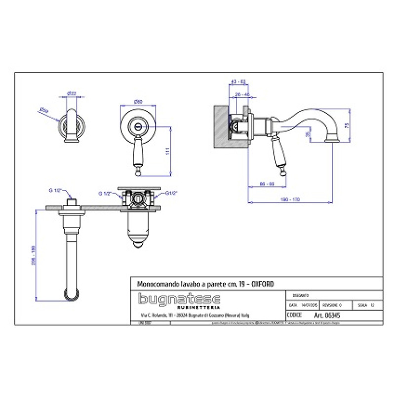 Bugnatese Oxford praustuvo maišytuvas iš sienos 6345