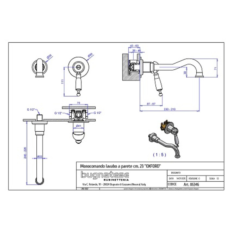 Bugnatese Oxford praustuvo maišytuvas iš sienos 6346