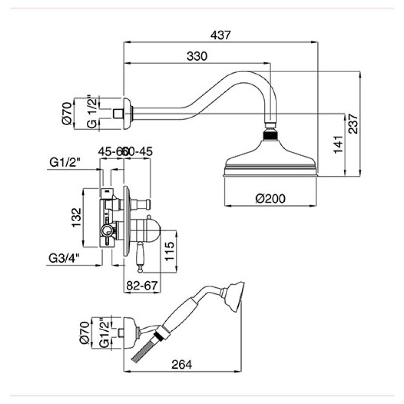 Bugnatese Oxford Termostatico potinkinė dušo sistema su dušo galva 6364