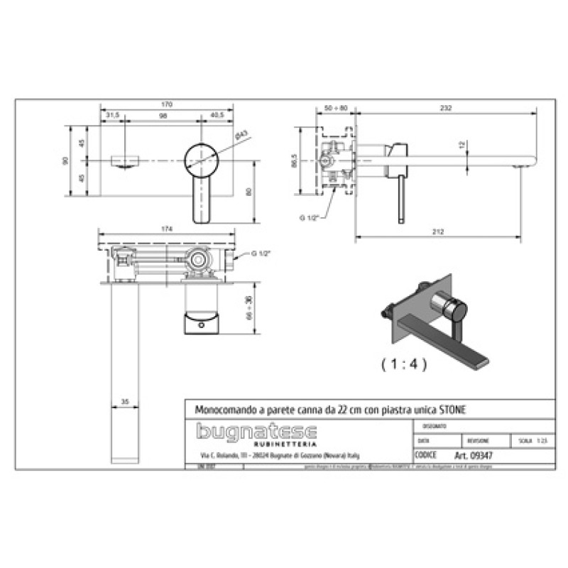 Bugnatese Stone praustuvo maišytuvas iš sienos 9347