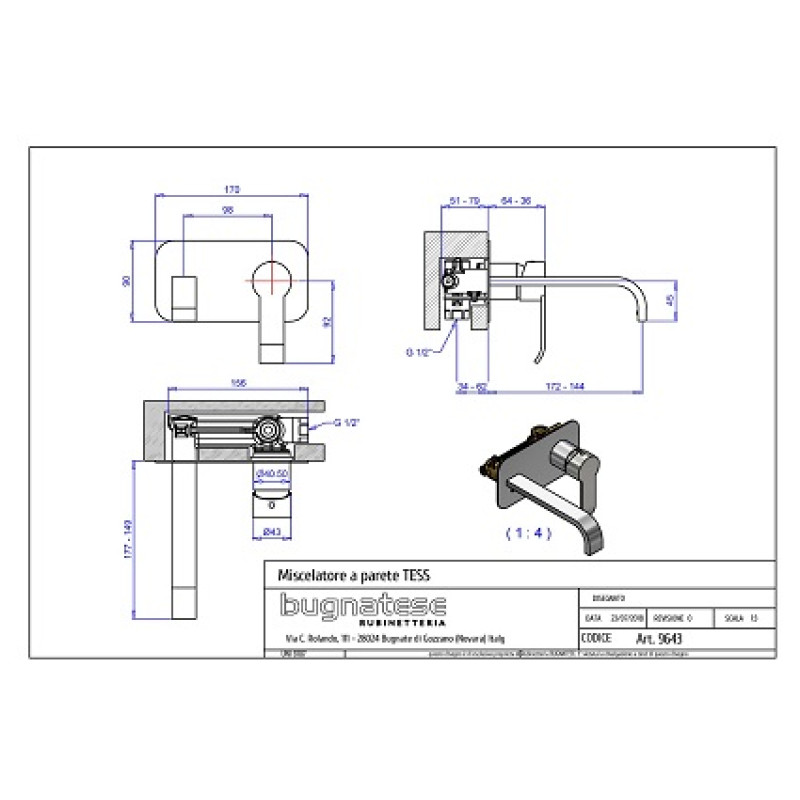 Bugnatese Tess praustuvo maišytuvas iš sienos 9643 - Voniosguru.lt