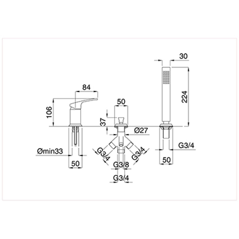 Bugnatese Vintage įmontuojamas į vonios kraštą maišytuvas 9857