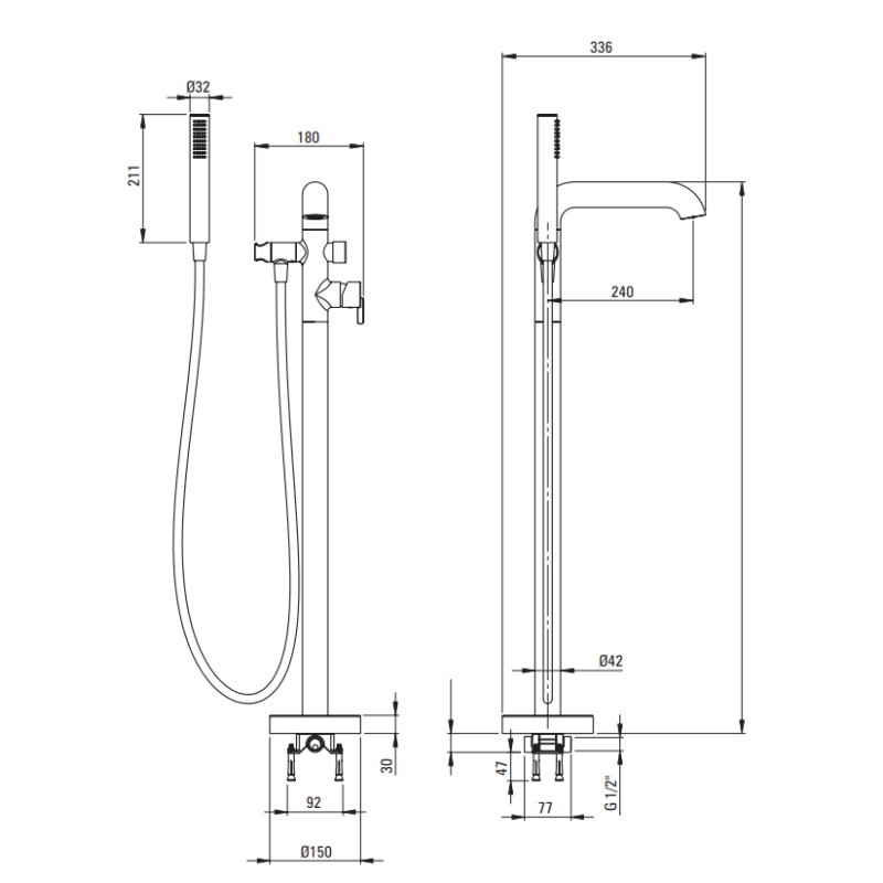 Deante SILIA vonios maišytuvas iš grindų su dušeliu, šlifuoto aukso spalva