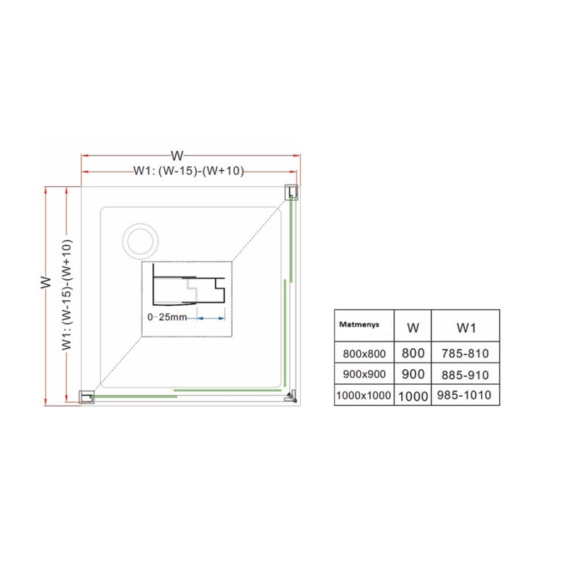 - Dušo kabinos matmuo 80x80 cm