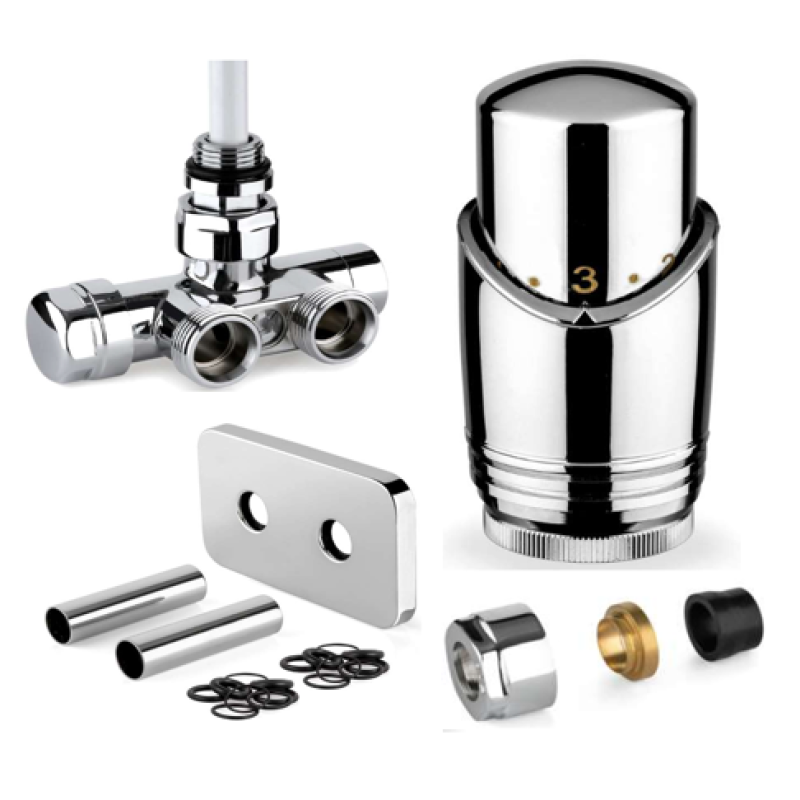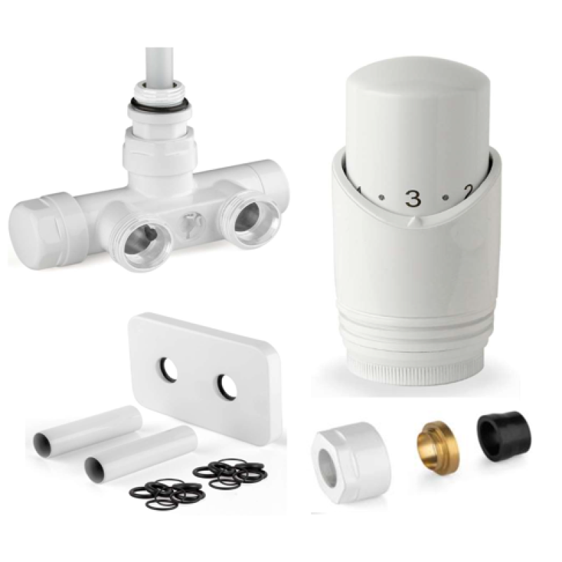 Komplektacija sudaro: Termoreguliatorius, termostatinė galvutė, eurokonusai Dn16 x2 vnt daugiasluoksniam vamzdžiui (vamzdžio pajungimui prie termoreguliatoriaus) ir apdaila.