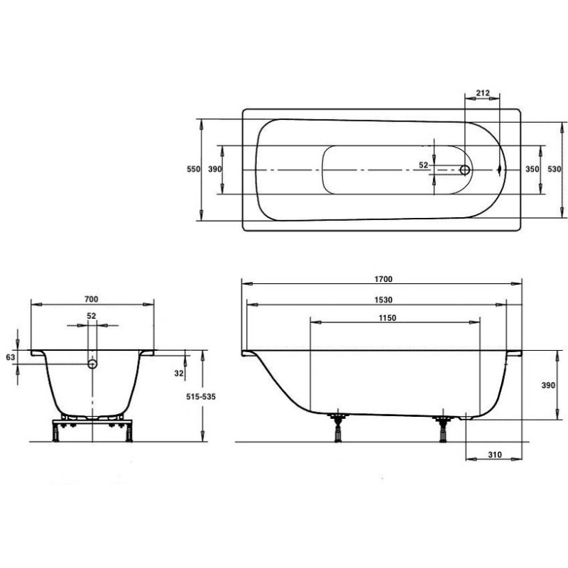 Kaldawei Eurowa vonia 170x70 cm, balta  119821020001  Kaldawei Eurowa vonia 170x70 cm, balta  119821020001