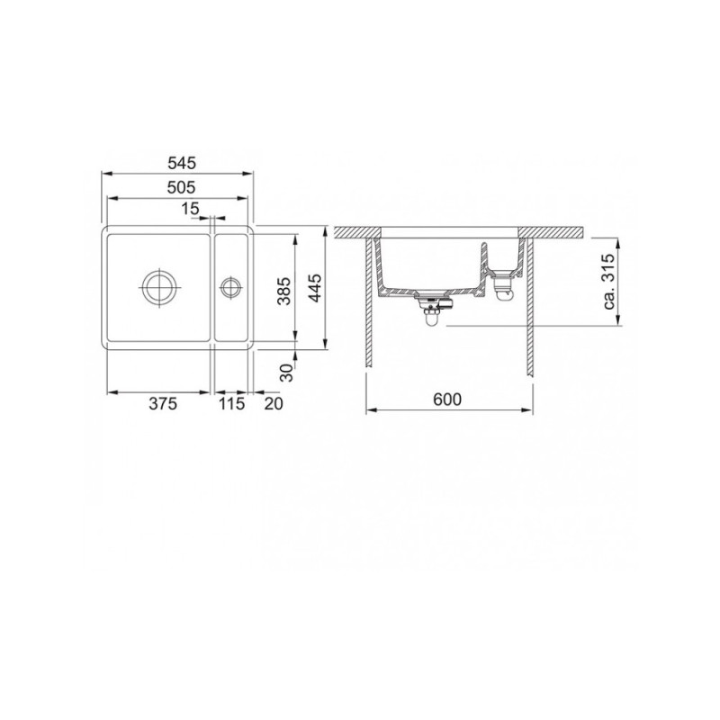 Franke Kubus KBK 160 keraminė plautuvė montuojama iš stalviršio apačios