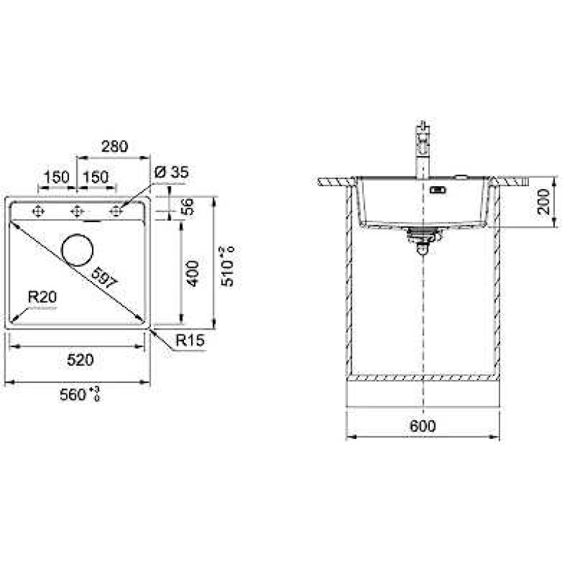 Plautuvės gylis: 200 mm