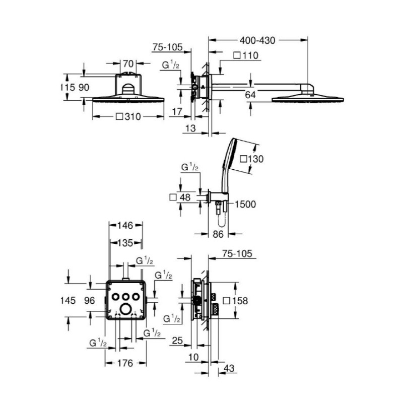 Grohe Grohtherm SmartControl Cube potinkinis termostatinis dušo komplektas 34706000