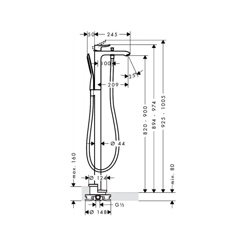 Hansgrohe Metris vonios maišytuvas iš grindų su potinkine dalimi 31471000 + 10452180