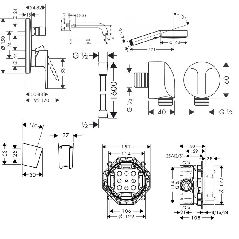 Hansgrohe VERNIS Blend Potinkinė vonios sistmea chromas