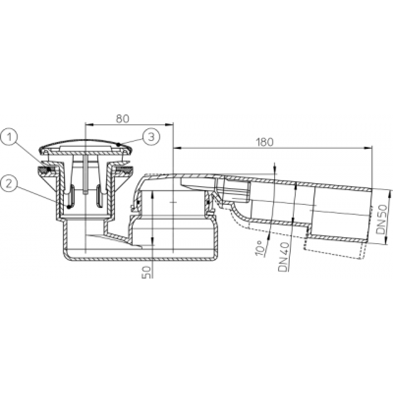 HL sifonas dušo padėklui 40/50 x 80mm su nerūdyjančio plieno dangteliu