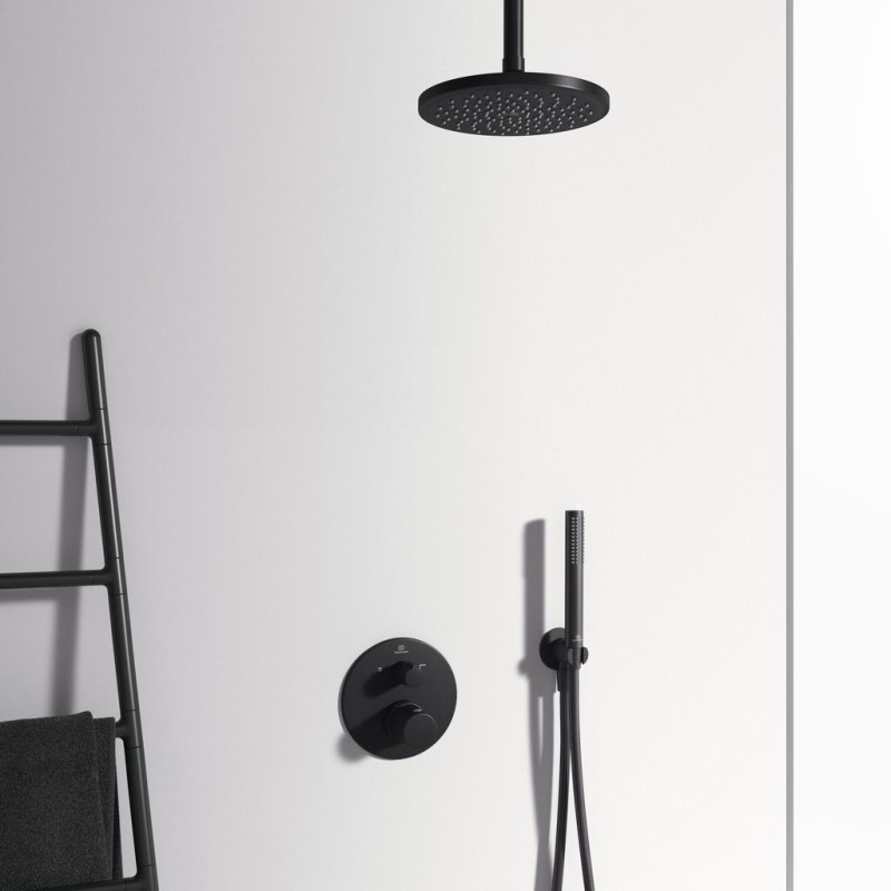2021 metų „Silk black“ produktų kolekcija skirta išdrįstantiems išsiskirti. Kokybe garsėjantis Belgijos gamintojas „Ideal Standard“ savo populiariausiems produktams suteikė matinę juodą spalvą. „Ideal Standard“ dušo produktai veikia tiesiog puikiai, nes yra sukurti pagal filosofija „from the inside out“. Kiekvienas sienoje slepiamas elementas yra kruopščiai suprojektuotas ir patikrintas. „Ideal Standard“ „Ceratherm T100” - apvalus potinkinis termostatinis maišytuvas. Termostatinis kartridžas pagaminta iš kalkėm atsparių polimerų, todėl veiks stabiliai ir ilgai net dažnai naudojamas. Pilnam komplektui būtina potinkinė dalis „EASY-BOX“ ( detalės kodas: A1000NU). 1969 metais „Ideal Standard“ inžinieriai Vokietijoje sukūrė keramikinį kartridžą. Tada buvo sukurtas vienos svirties maišytuvas, toks - kokį jūs naudojate dabar. Šį įmonė gamina vienus patikimiausių maišytuvų. Privalumai • Aukščiausios kokybės „Firmaflow“ kartridžas • Temperatūros ribojimo funkcija • Pagaminta Europoje • 5 metų garantija maišytuvui • 2 metų garantija juodai dangai