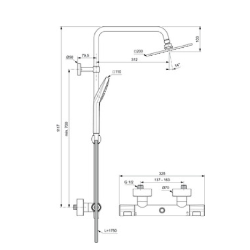 Ideal Standard Ceratherm T100 dušo sistema su termostatiniu maišytuvu  Ideal Standard Ceratherm T100 dušo sistema su termostatiniu maišytuvu