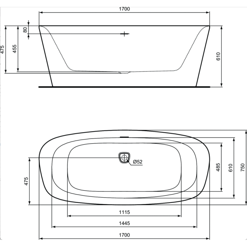 Ideal Standard Dea Duo laisvai pastatoma akrilinė vonia 170x75 cm su Click-Clack nuotekų vožtuvu, balta.