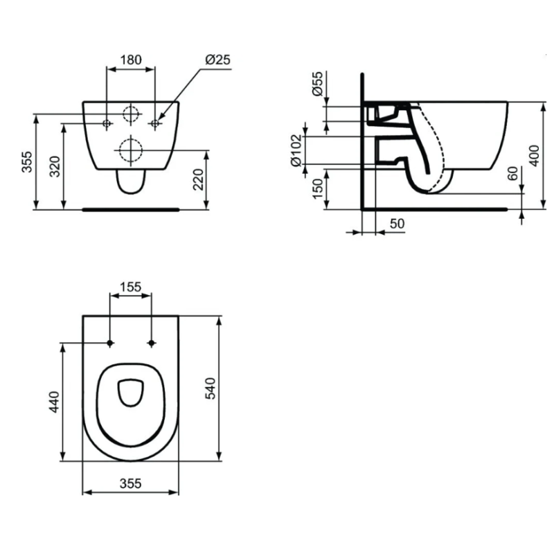Ideal Standard i.life A pastatomas unitazas su horizontaliu išbėgimu, RimlessLS+   Ideal Standard i.life A pastatomas unitazas su horizontaliu išbėgimu, RimlessLS+