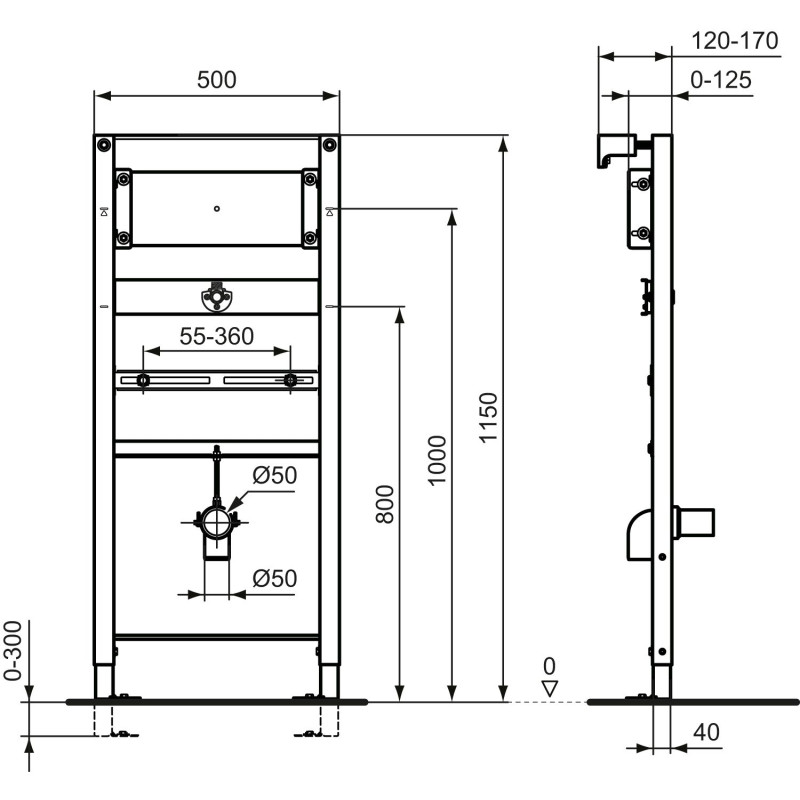 Ideal Standard potinkinis pisuaro rėmas PROSYS UNIVERSAL su tvirtinimo elementais, komplekte skersinis potinkinės dalies tvirtinimui