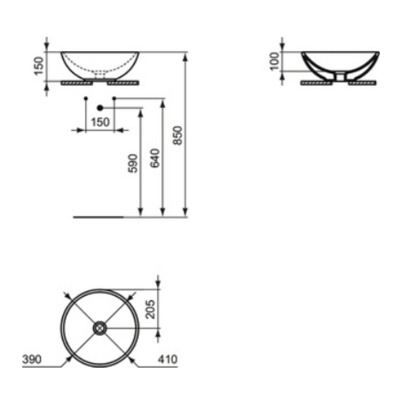 Ideal Standard STRADA O praustuvas montuojamas ant stalviršio 41x41 cm (410 x 410 x 150 mm), be persipilimo, balta spalva