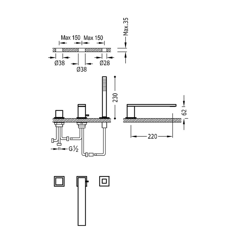 Įmontuojamas į vonios kraštą maišytuvas Tres Cuadro-Tres 006.161.04