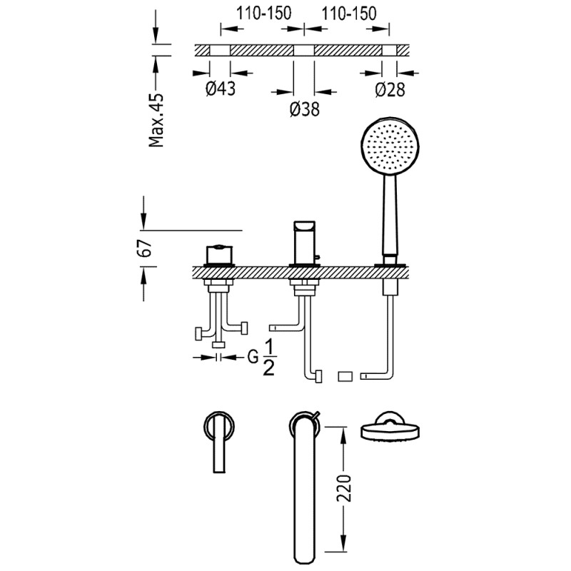Įmontuojamas į vonios kraštą maišytuvas Tres Lex-Tres Selection 081.161.03